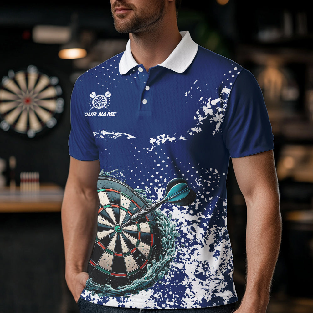Personalized White & Blue Grunge Darts Shirt For Men Custom Dart Outfit Team Jersey NQS9510