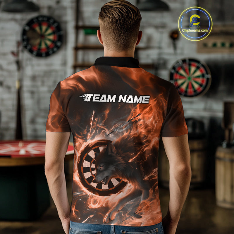 Custom Orange Fire Flame Dart Wolf Men Polo Shirts, Dart League Shirt Team Jerseys IPHW10006