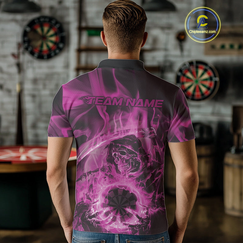 Custom Pink Flame Grim Reaper Halloween Dart Men Polo Shirts For Team, Dart Jerseys IPHW10034