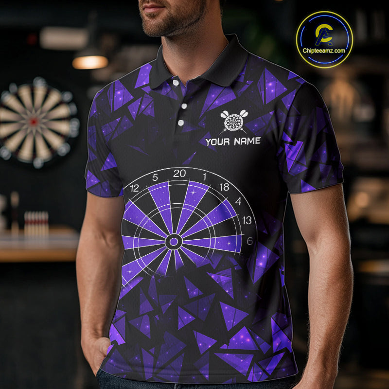 Custom Black & Purple Geometric Dartboard Dart Polo Shirt For Men Outfits Dart Jerseys NYN1606