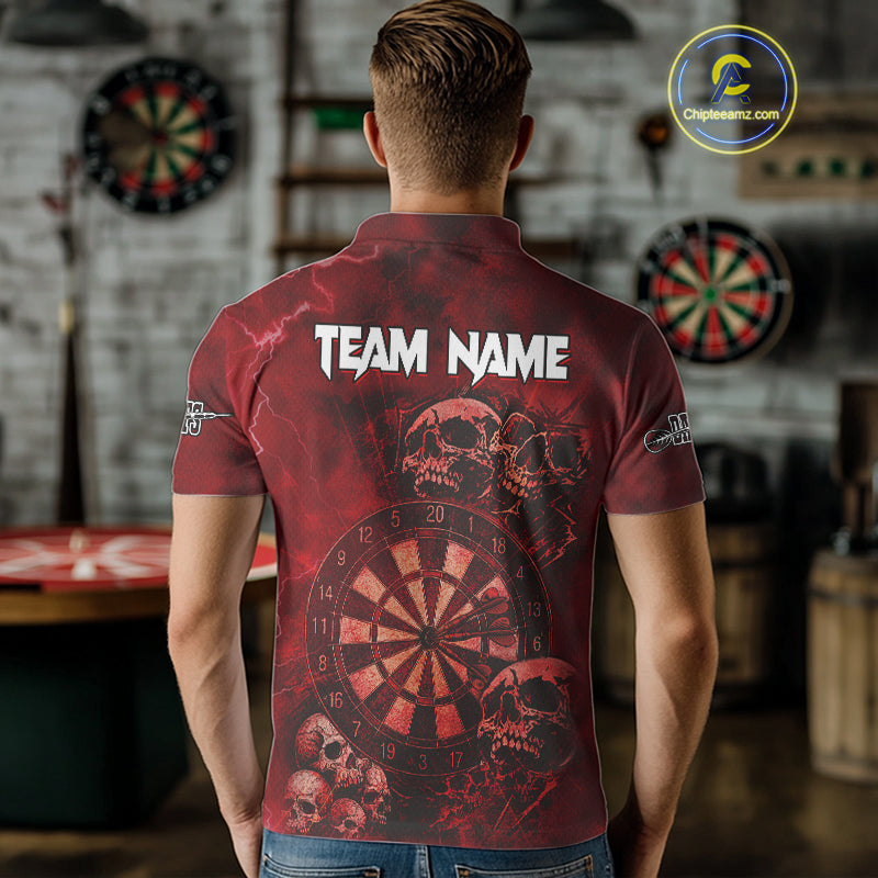 Custom Grunge Red Dartboard Multi-Skull Dart Men Polo Shirt Dart Team Jerseys NYN1622