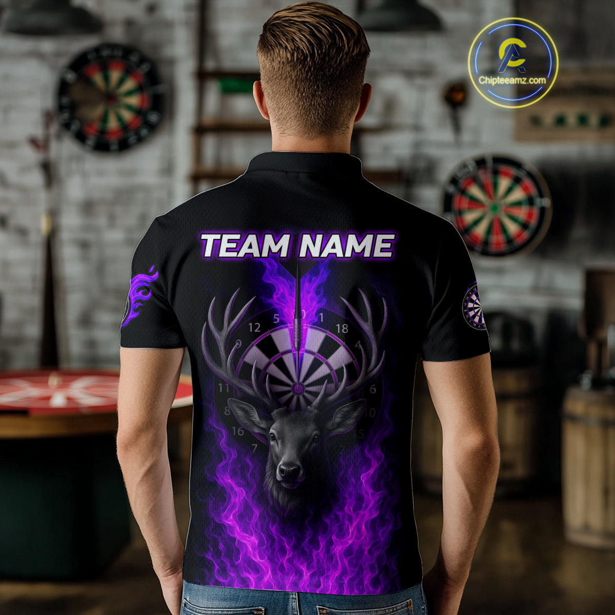 Custom Purple Flames Dartboard Deer Funny Dart Men Polo Shirt Dart Team Jerseys NYN1632