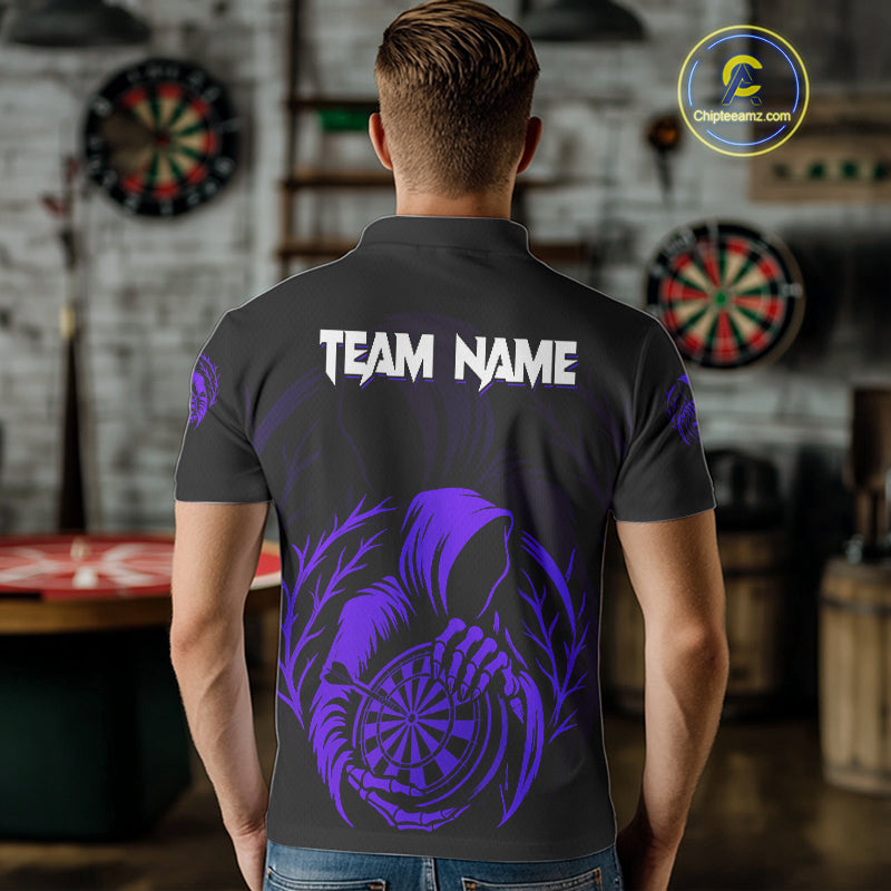 Custom Black And Purple Grim Reaper Dartboard Dart Men Polo Shirt Outfits Dart Jerseys NYN1637