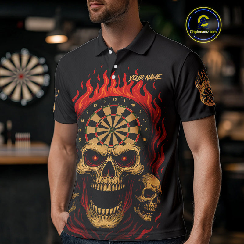 Custom Grunge Horror Skull Fire Flame Dartboard Dart Polo Jerseys For Men Dart Gifts NYN1648