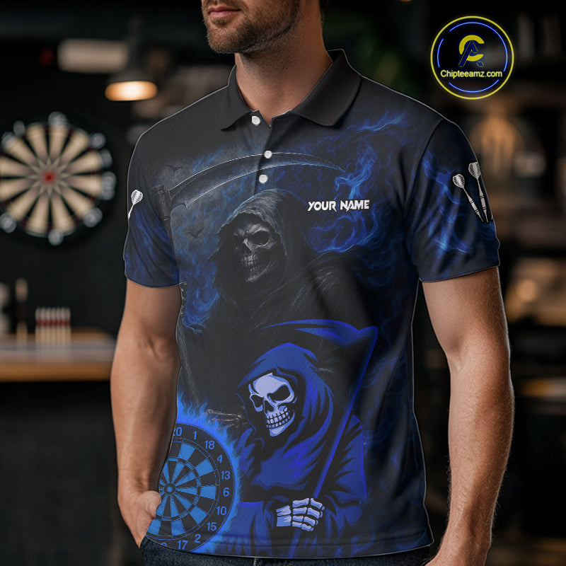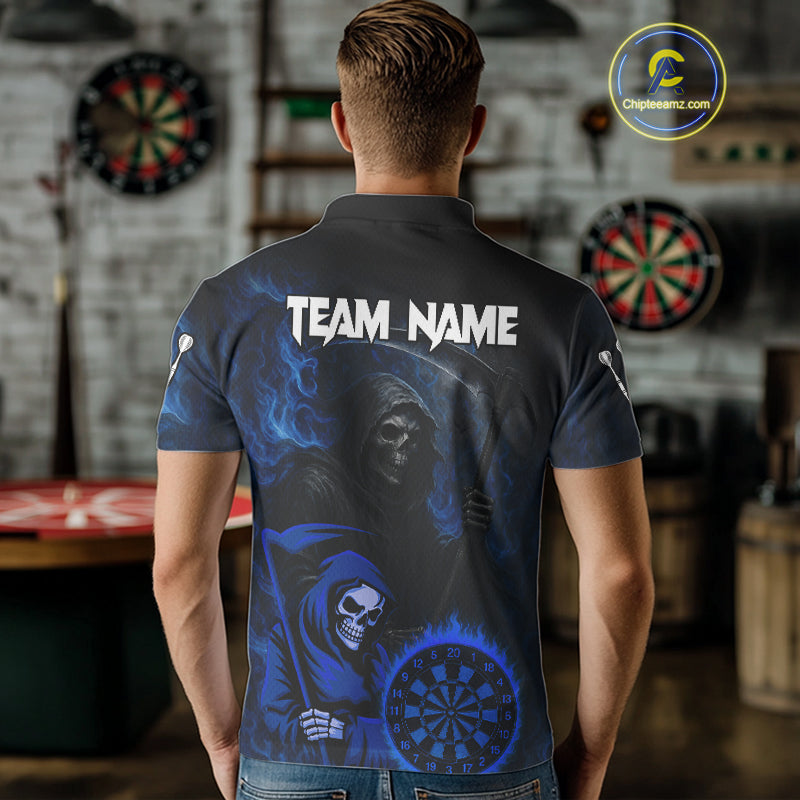 Custom Blue Smokes Flame Dartboard Grim Reaper Dart Men Polo Jerseys Dart Team Shirt NYN1655