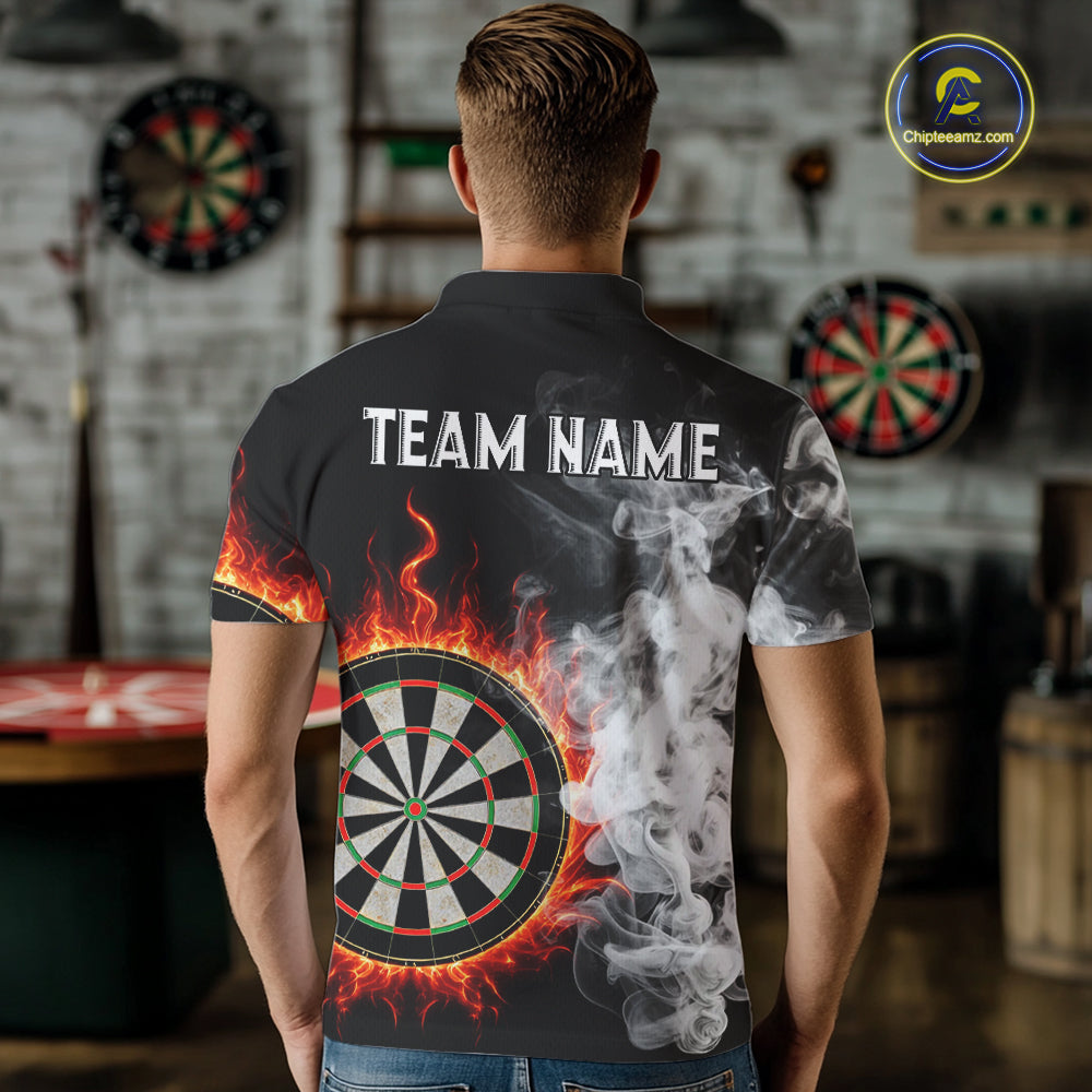 Custom White Smokes Red Flames Dartboard Dart Men Polo Jerseys Dart Team Shirt NYN1667