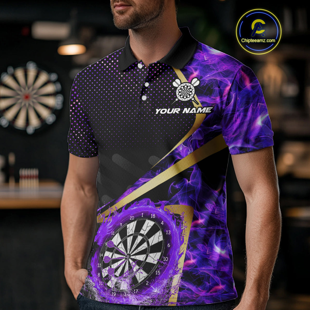 Custom Purple Flames Dragon Dartboard Halftone Dart Men Polo Jerseys Gold Dart Team Shirt NYN1691