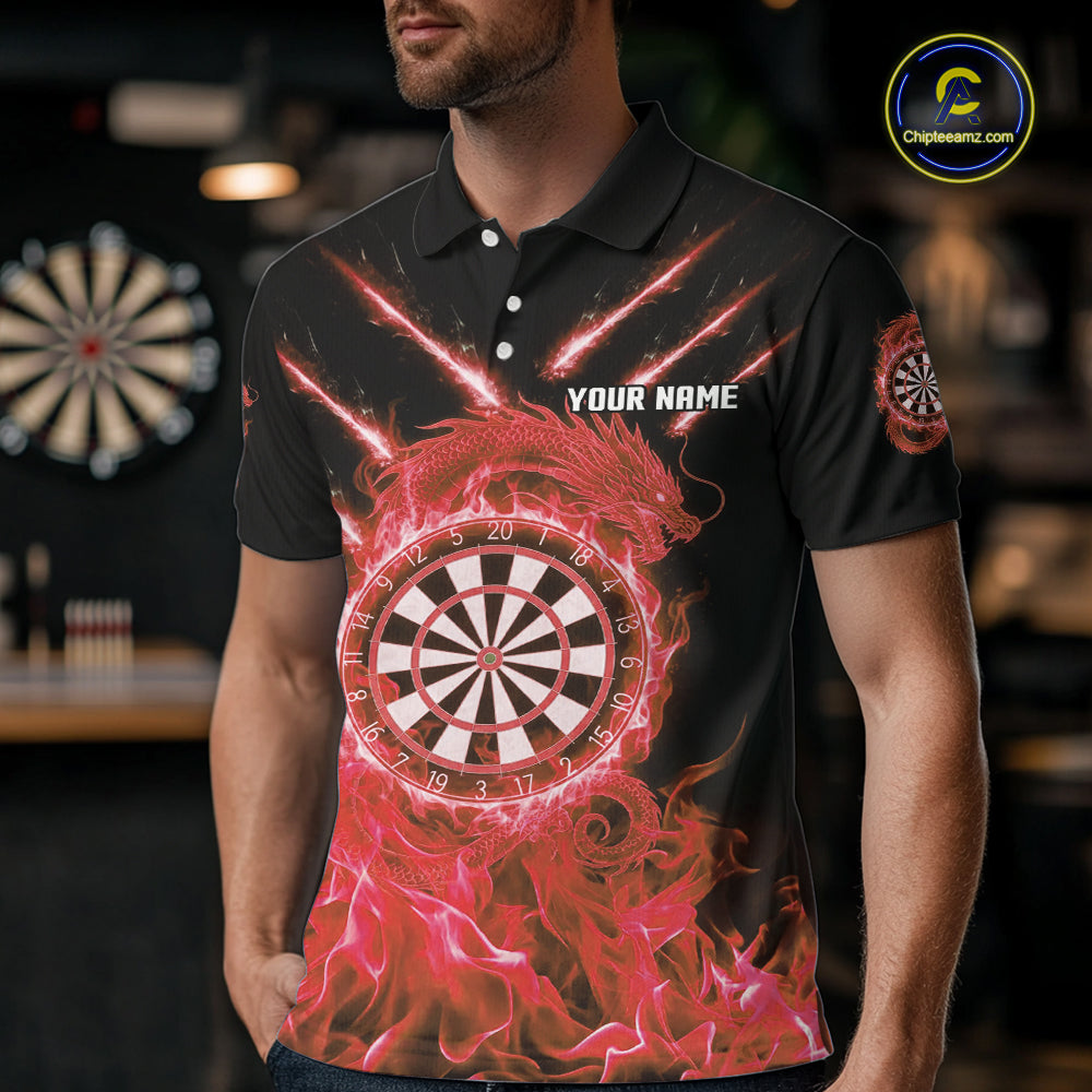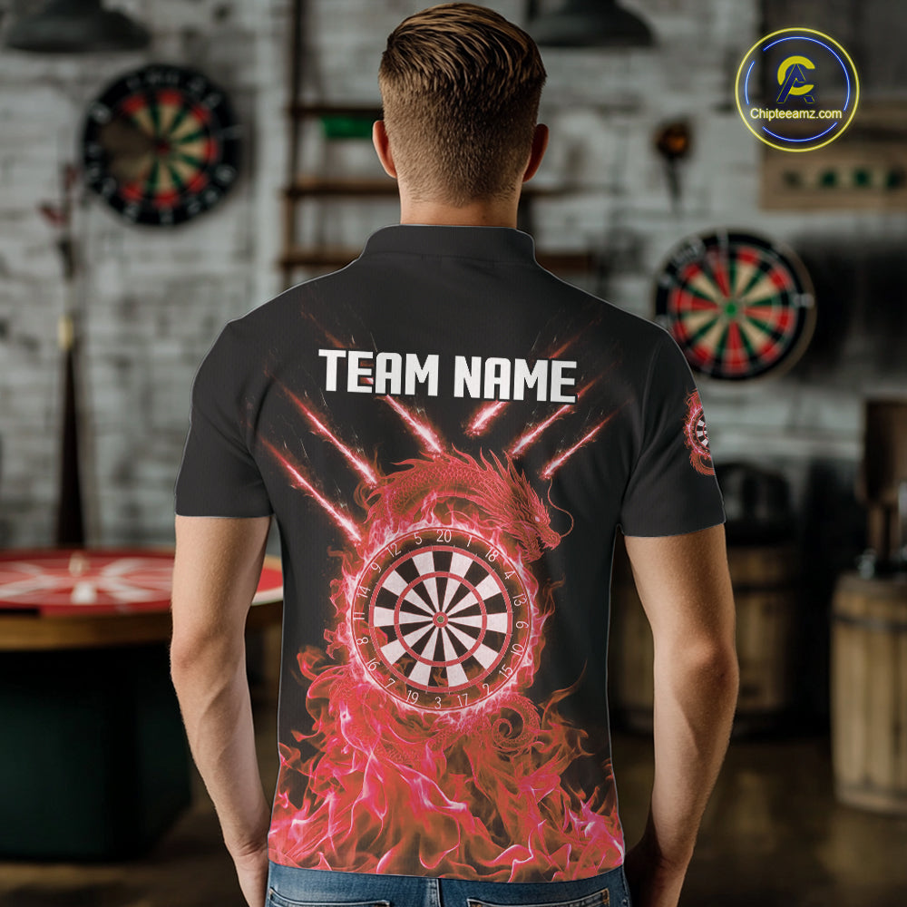 Custom Lightning Dragon Red Flames Dartboard Dart Men Polo Jerseys Dart Team Shirt NYN1702