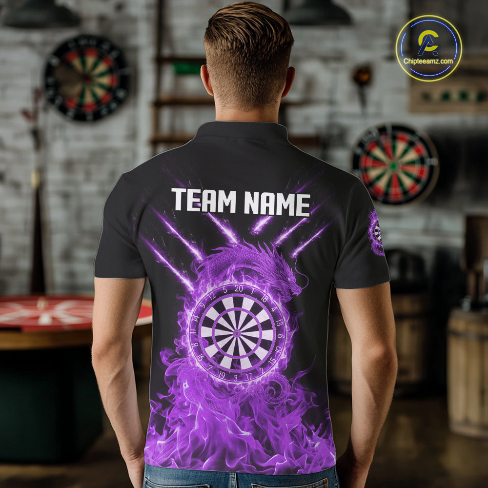 Custom Lightning Dragon Purple Flames Dartboard Dart Men Polo Jerseys Dart Team Shirt NYN1704