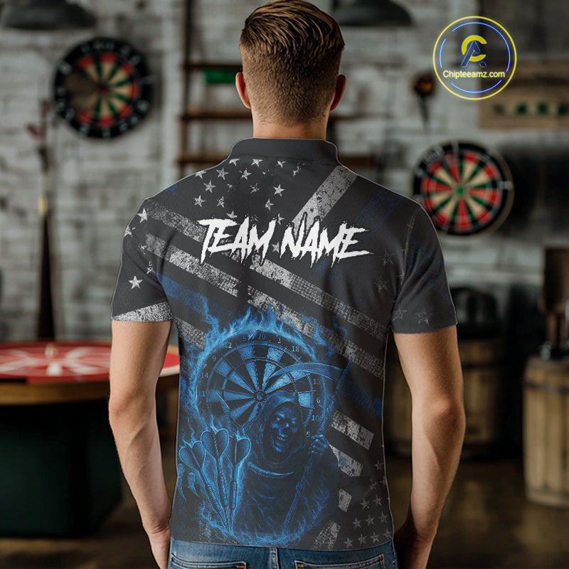 Custom Grunge US Flag Blue Smokes Skeleton Dart Men Polo Jerseys Patriotic Dart Shirts NYN1730