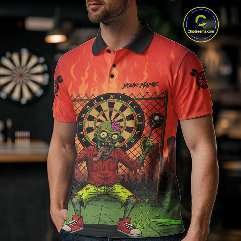Custom Green & Orange Funny Zombie Dartboard Dart Men Polo Jerseys Funny Dart Shirts NYN1742