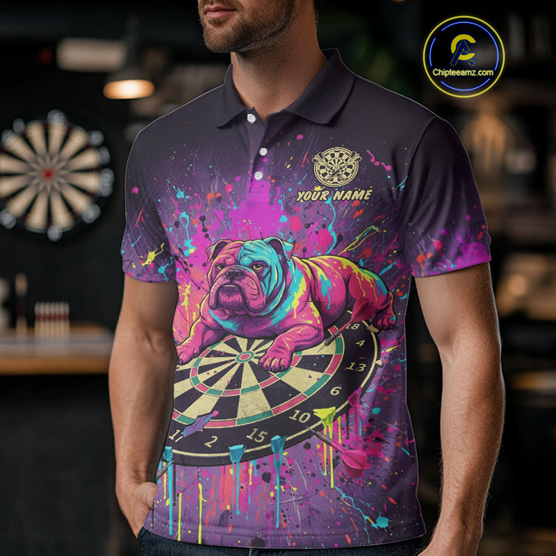 Custom Purple Bulldog Splatter Dartboard Men Darts Polo Shirt Funny Colorful Dart Jerseys NYN1828