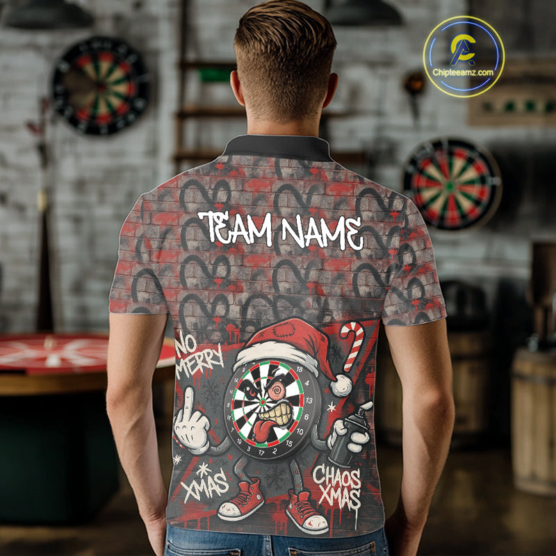 Custom Funny Dartboard Red Graffiti Christmas Darts Polo Shirt For Men, Xmas Dart Jerseys NYN1829