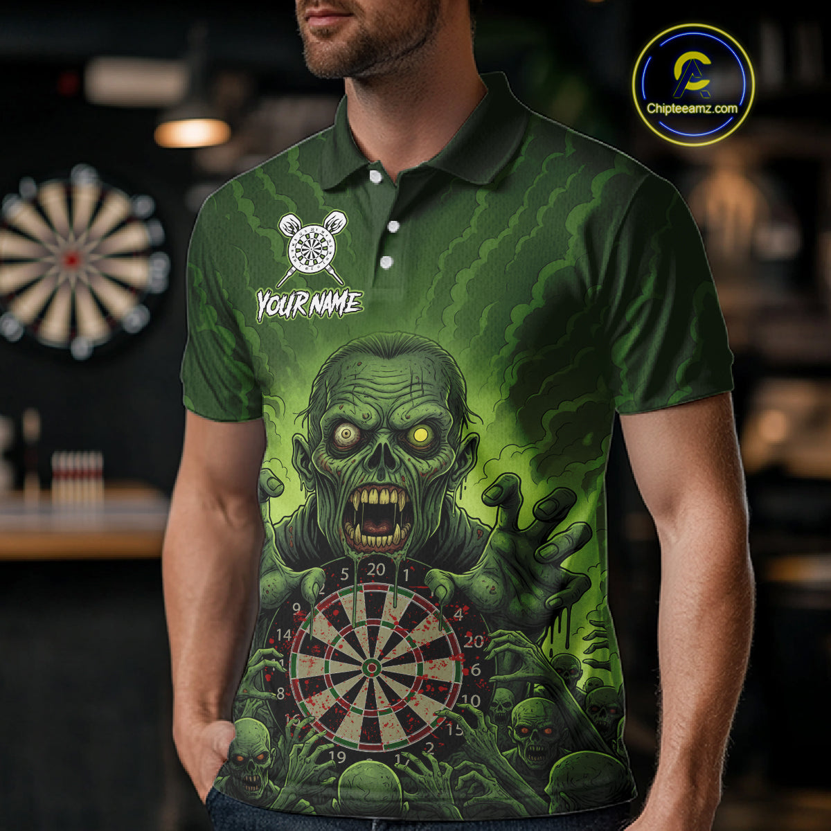 Custom Green Multi Zombie Grunge Dartboard Darts Polo Shirt For Men Skull Dart Jerseys NYN1835