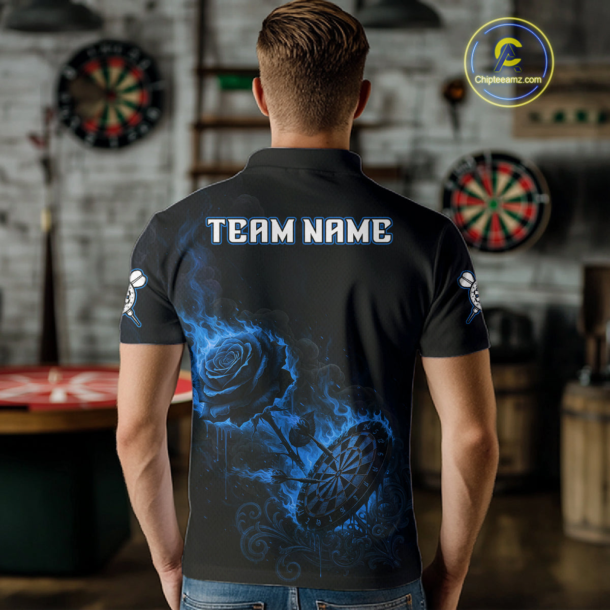 Custom Black And Blue Flames Roses Dartboard Men Darts Polo Shirt, Dart Team Jerseys NYN1846