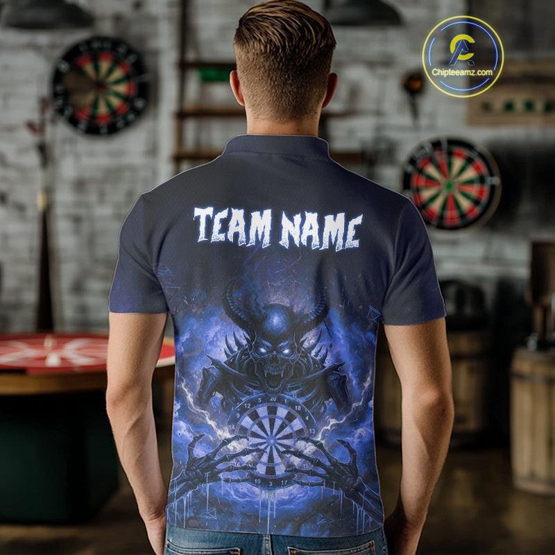 Custom Blue Flames Skeleton Grunge Dartboard Men Darts Polo Shirt Horror Dart Jerseys NYN1897