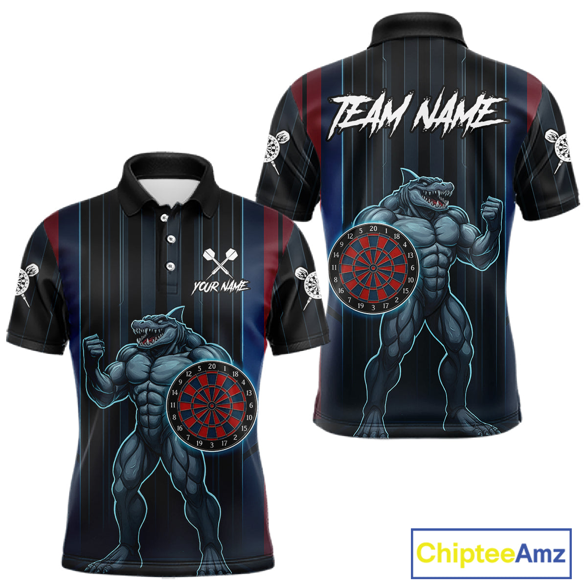 Funny Blue & Red Shark Dartboard Custom Men Darts Polo Shirt Dart Tournament Jerseys NYN1905