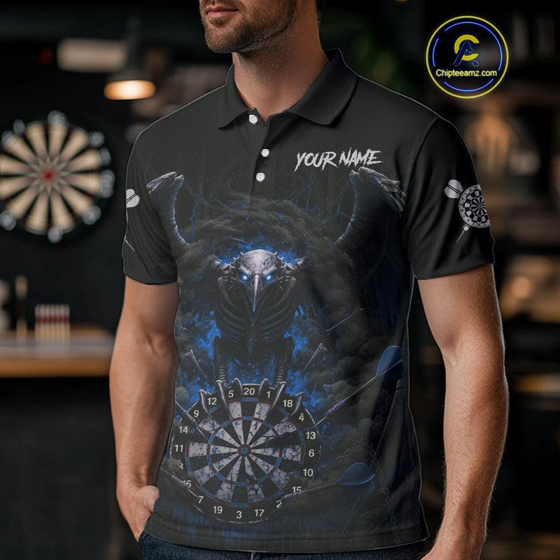 Black Smokes Eagle Chain Blue Grunge Dartboard Custom Men Darts Polo Shirt Dart Jerseys NYN1909