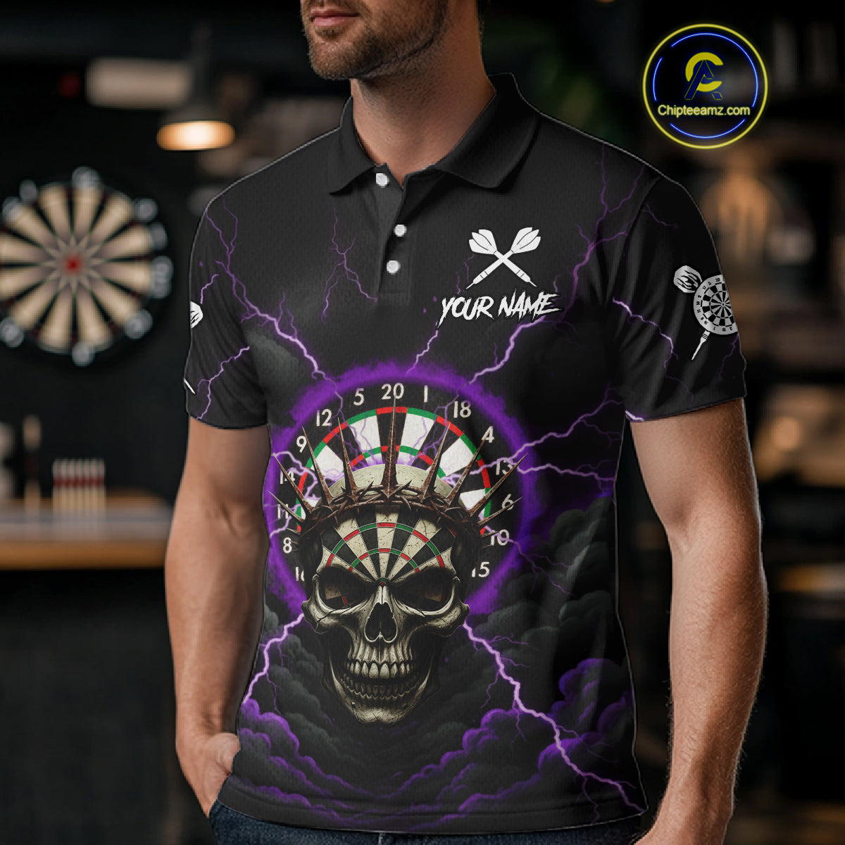 Custom Lightning Purple Smokes Skull Dartboard Men Darts Polo Shirt Skull Dart Jerseys NYN1918