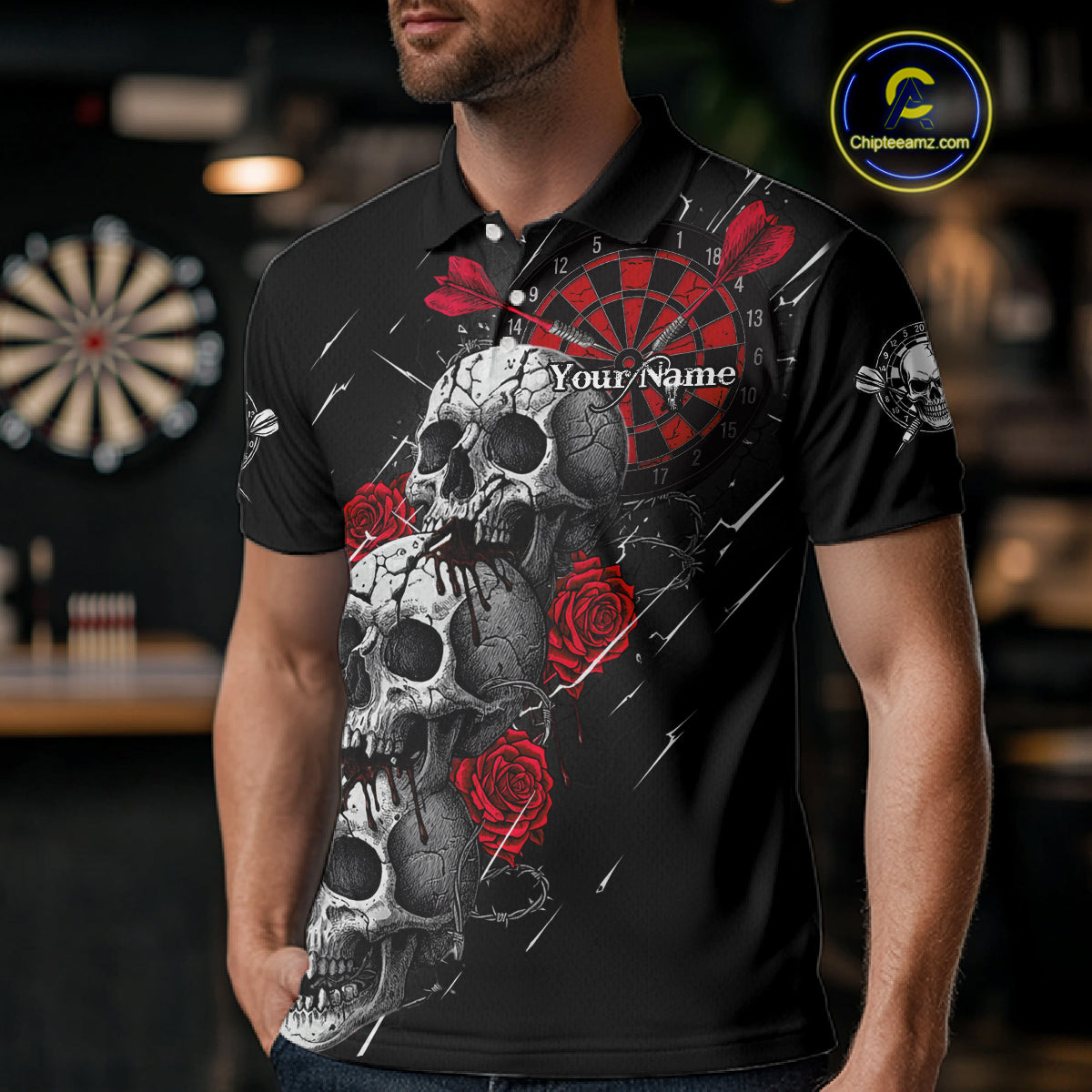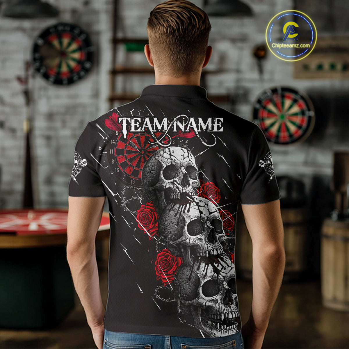 Custom Red Roses Blood Dripping Skull Dartboard Men Darts Polo Shirt  Dart Jerseys NYN1927