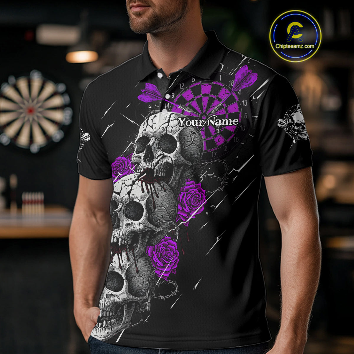 Custom Purple Roses Blood Dripping Skull Dartboard Men Darts Polo Shirt  Dart Jerseys NYN1928