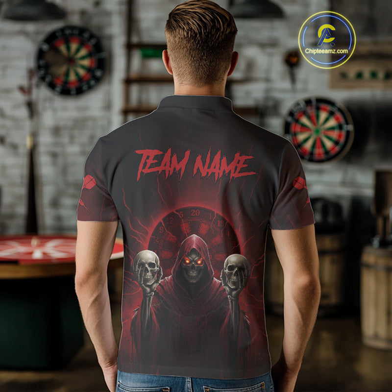 Custom Red Grim Reaper Grey Skull Dartboard Men Darts Polo Shirt Grunge Dart Jerseys NYN1935