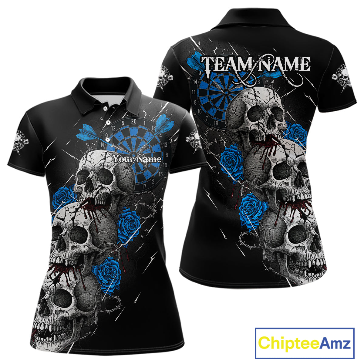 Custom Blue Roses Blood Dripping Skull Dartboard Women Darts Polo Shirt Dart Jerseys NYN1926