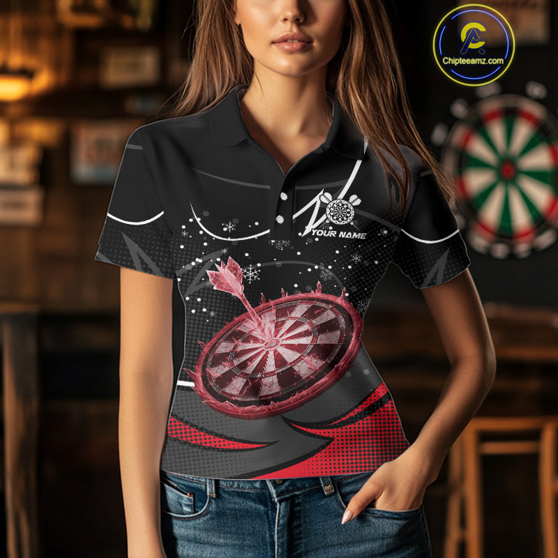 Red Dartboard Frozen Ice Darts Shirt For Women Custom Darts Jersey Team Polo & Quarter Zip TDM5227