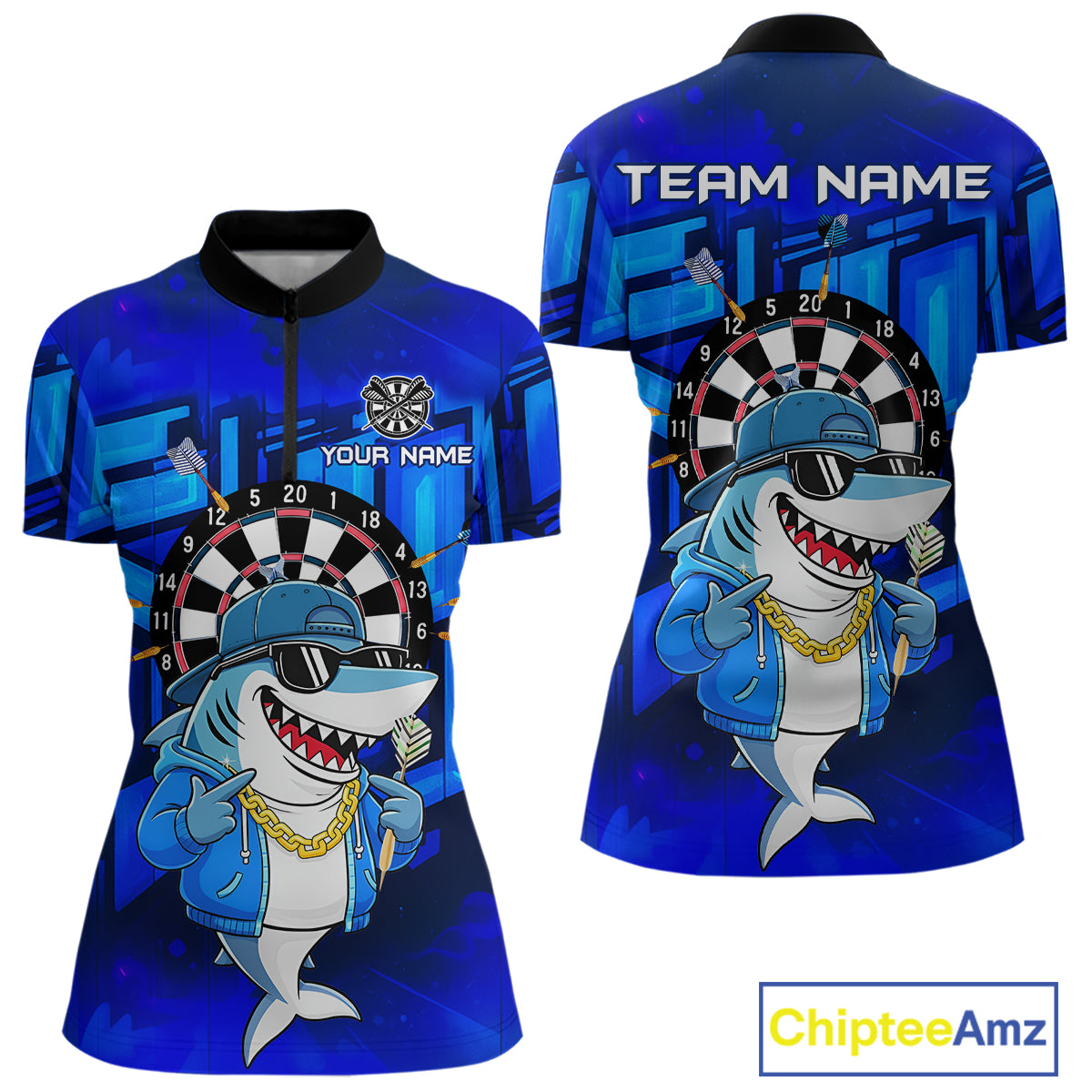 Blue Funny Shark Custom Darts Shirt For Women, Personalized Darts Jersey Team Polo & Quarter Zip TDM5245