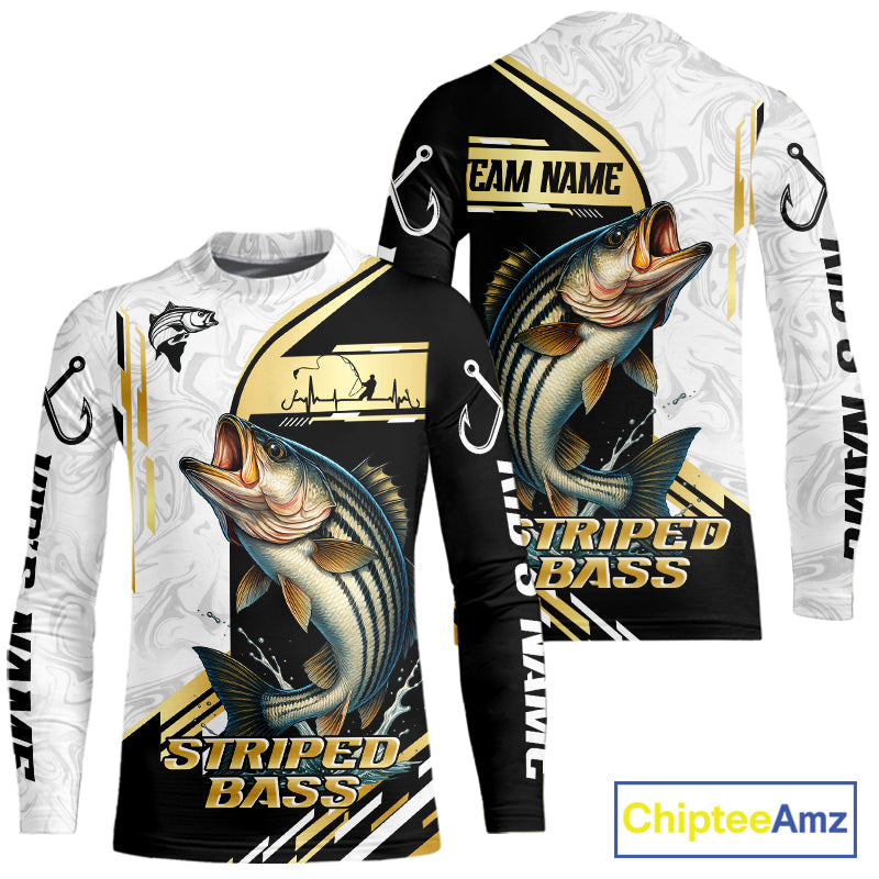 Personalized Striped Bass fishing shirts Custom sun protection striper fishing team jerseys | Gold NQS11159