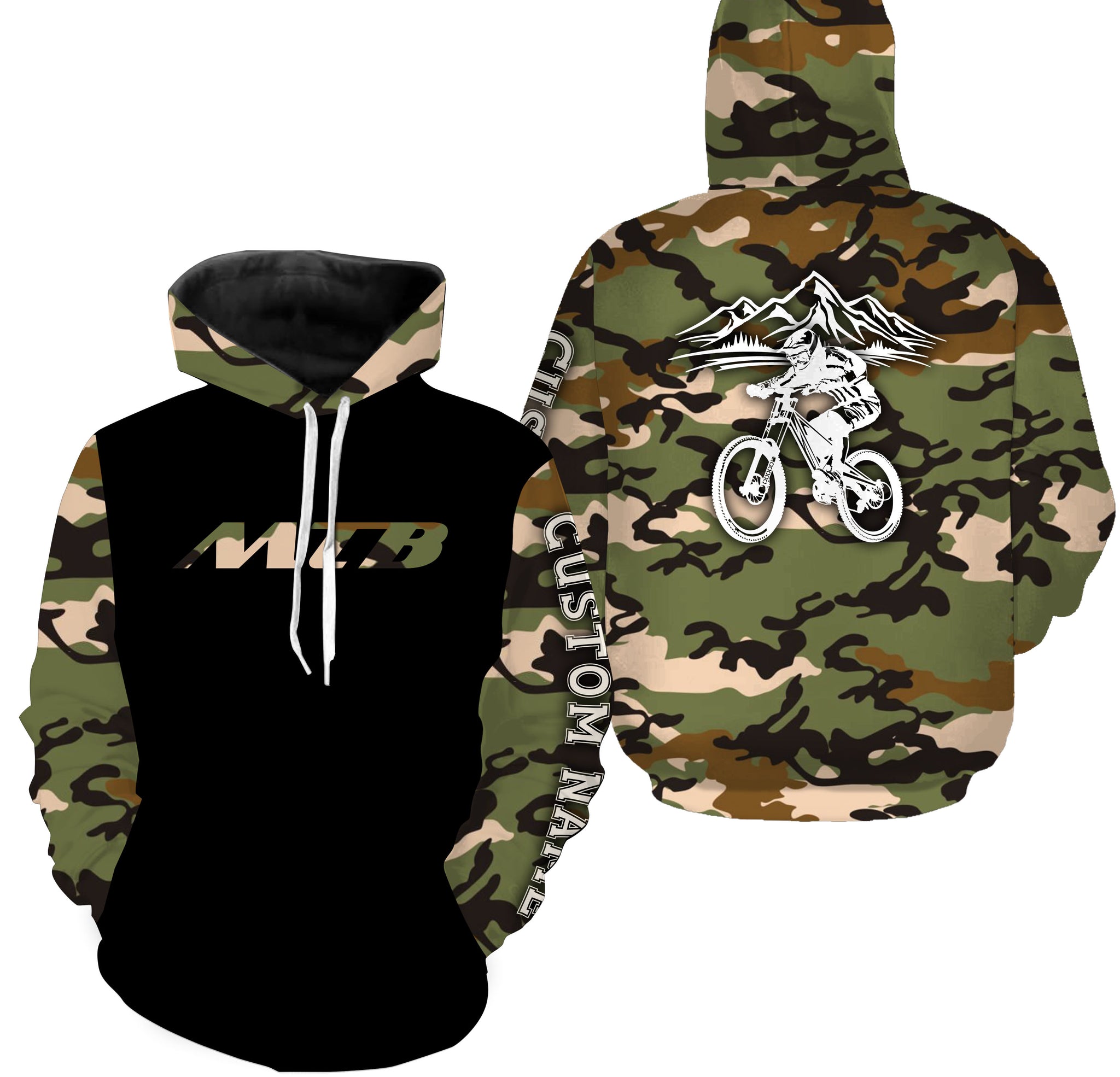 MTB Jersey Long Sleeve Hoodie Shirt, Camo Biking Cycling Shirt, Mountain Biking Shirt Biking Clothing| JTS445