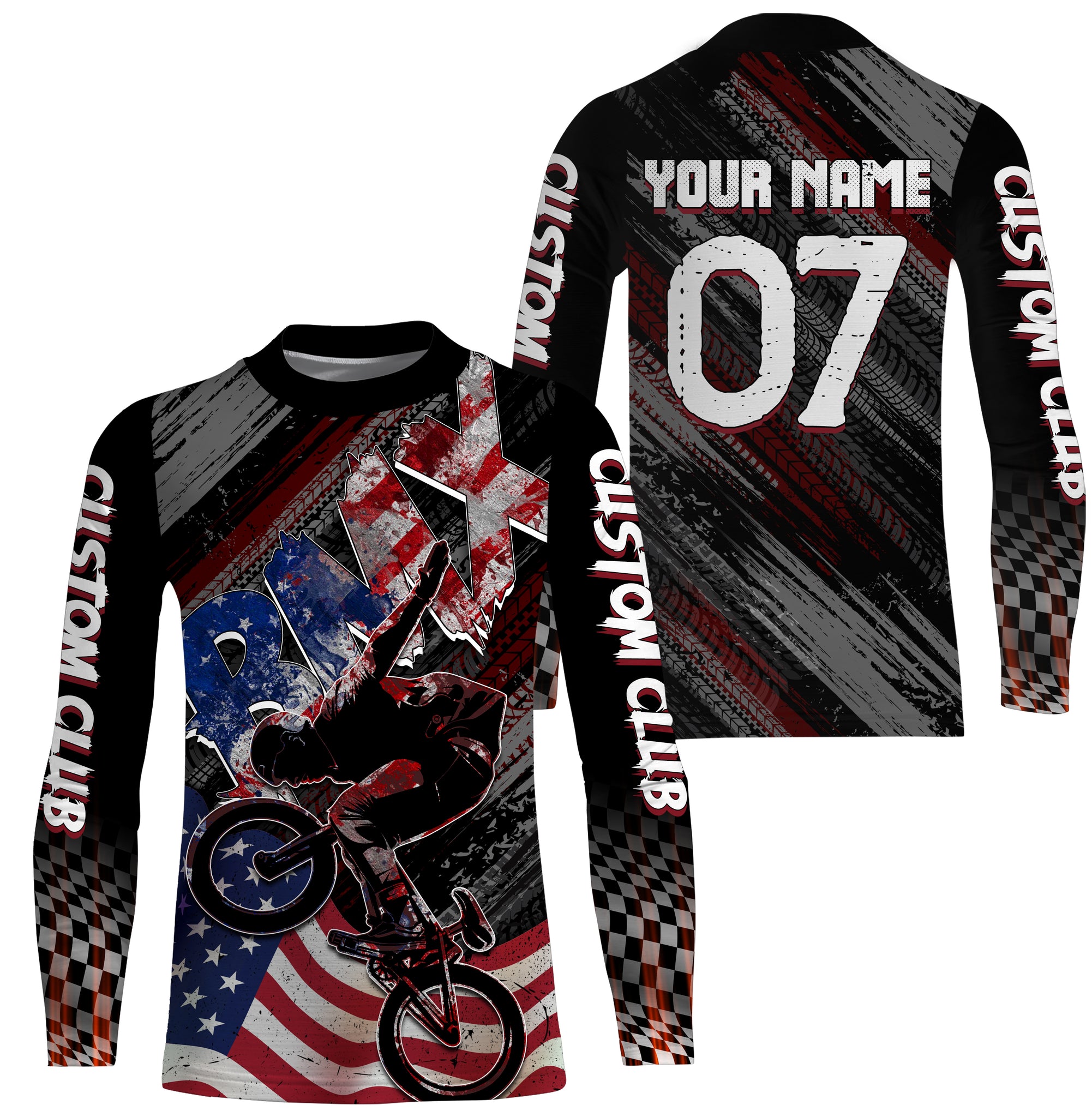 Personalized adult kid BMX jersey Patriotic UPF30+ USA riding racewear American cycling shirt| SLC31