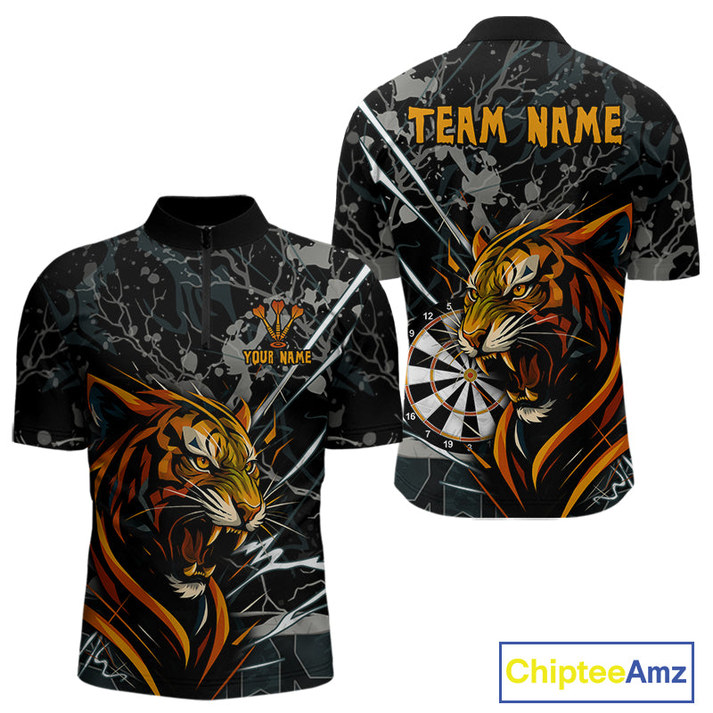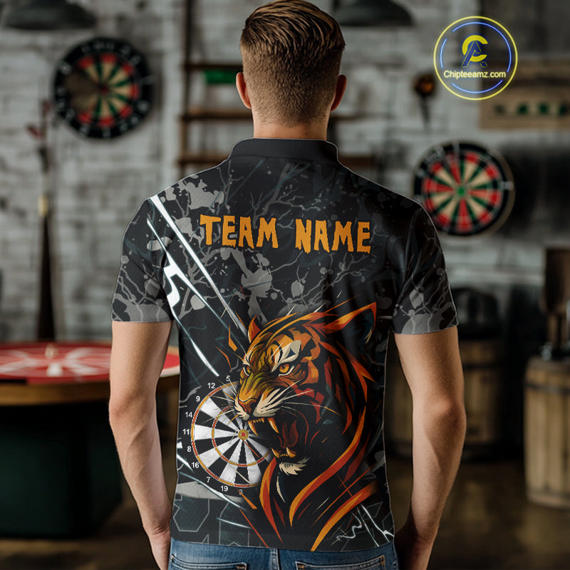 Custom Men's Dart Team Shirt - Fierce Tiger & Dartboard - Personalized Name & Team NYN0334