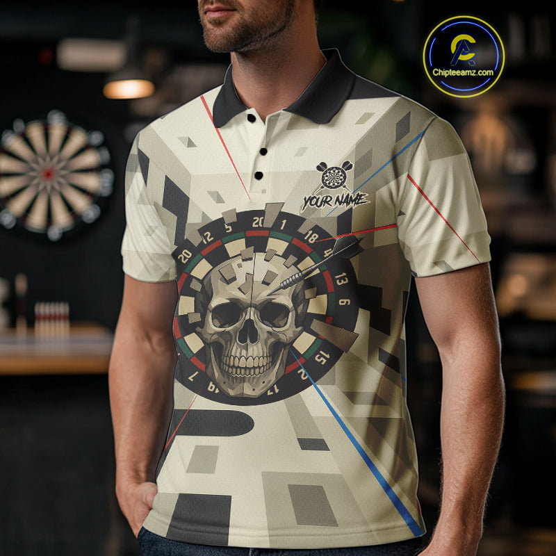 Geometric Dartboard Beige Skull Custom Mens Polo Dart Shirt Gifts For Dart Players NYN1767