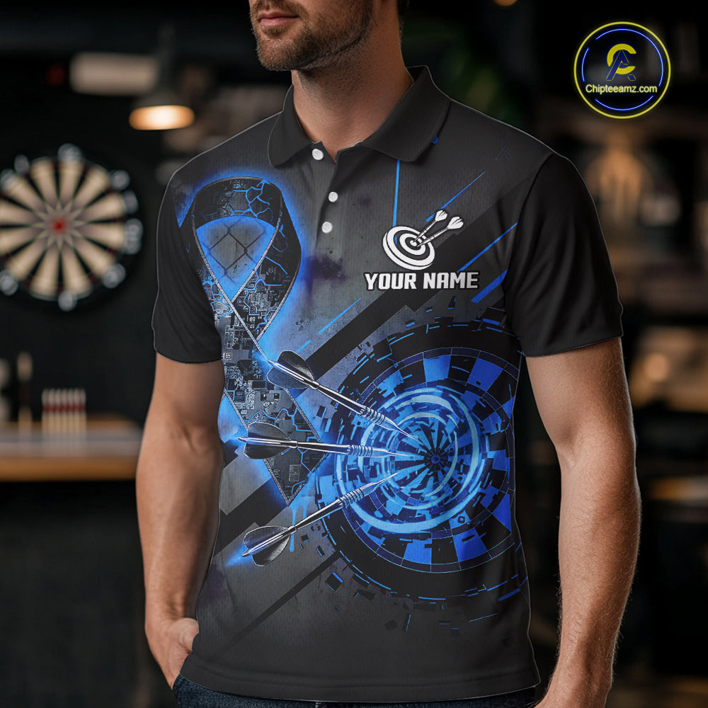 Lightning Blue Ribbon Dartboard Custom Breast Cancer Awareness Darts Polo Shirt For Men NYN1806