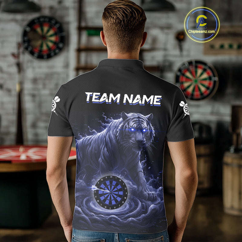 Custom Blue Smokes Funny Tiger Dartboard Men Darts Polo Shirt, Outfits Dart Jerseys NYN1811