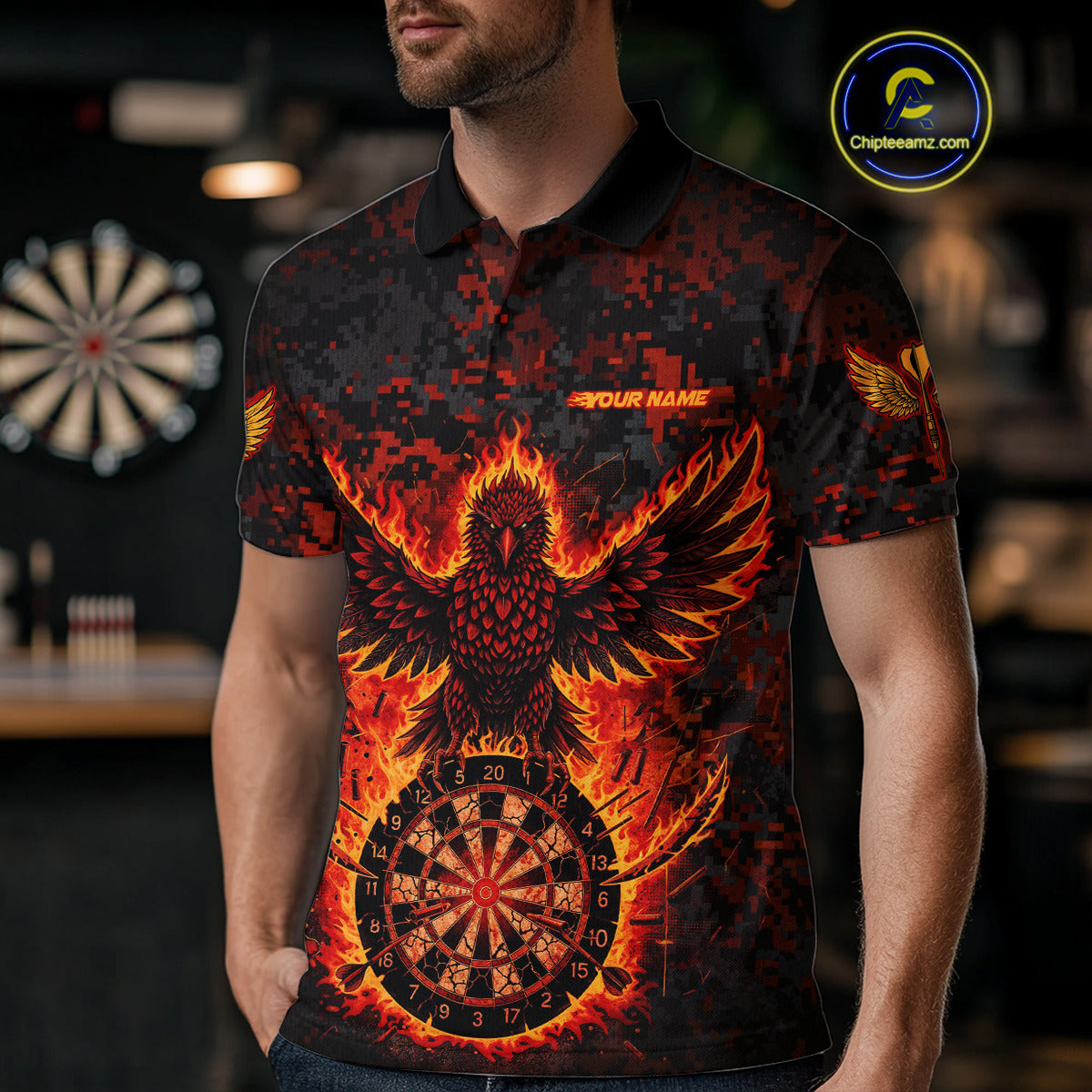 Custom Red Flames Eagle Digital Camo Darts Polo Shirt For Men Cracked Dart Jerseys NYN1958