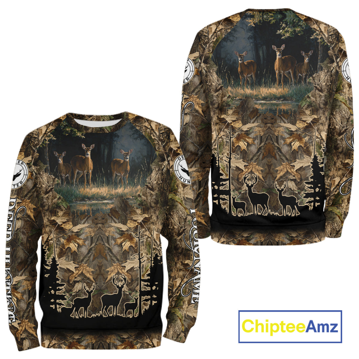 Deer Hunting 3D All Over Print Shirt Custom Brown Fall Season Camo Hunting Clothes NBT322