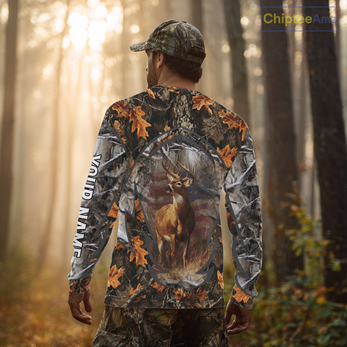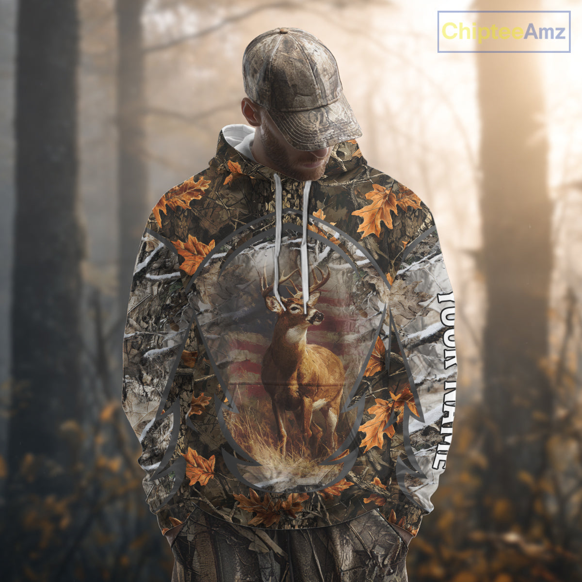 Deer Hunting Camo Hoodie American Flag Long Sleeve 3D Shirt Men Camo Hoodie NBT293