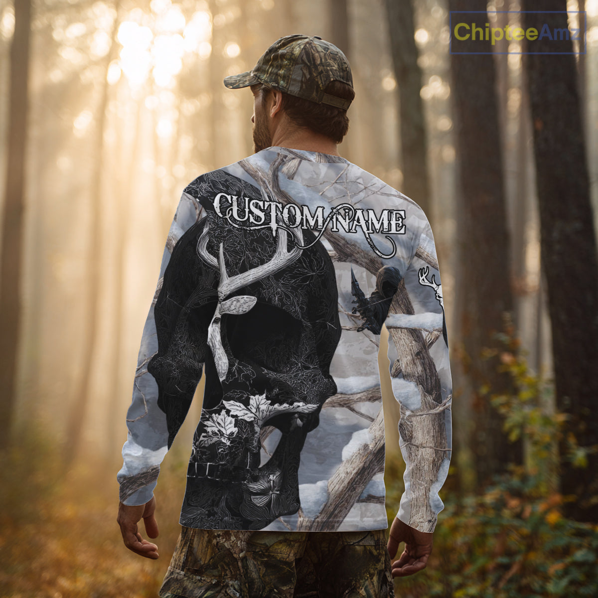 Snow Deer Hunting Shirt Deer Skull Camo Full Printing Custom Name For Deer Hunters, Best Hunting Gifts NHT21