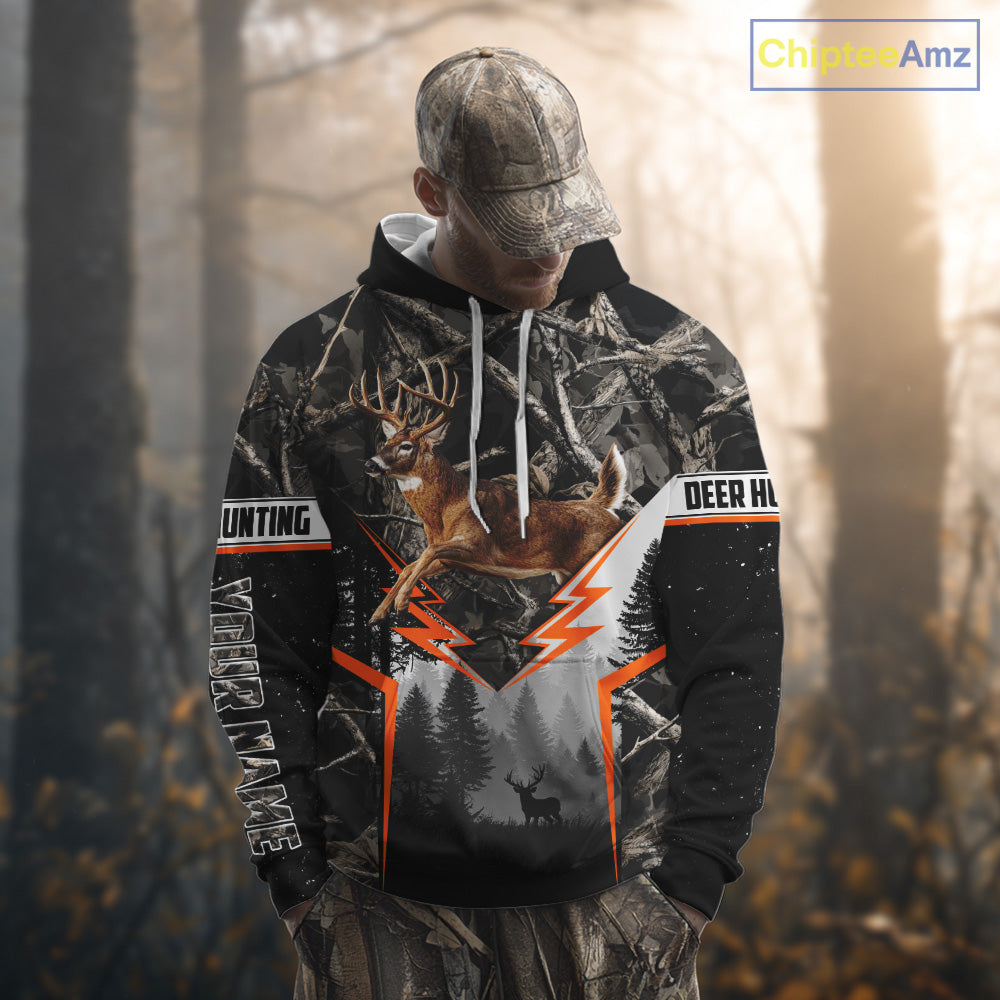 Jumping Whitetail Deer Hunting Dark Camo Custom Name 3D All Over Printed Shirts, Hunting Gifts NBT73