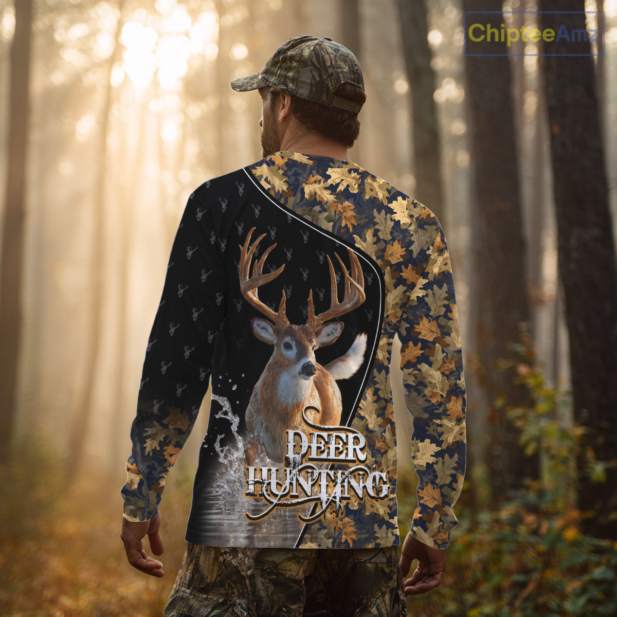 Whitetail Deer Hunting Clothes Custom Name Beautiful Autumn Leaves Camo Hunting Gifts NHT42