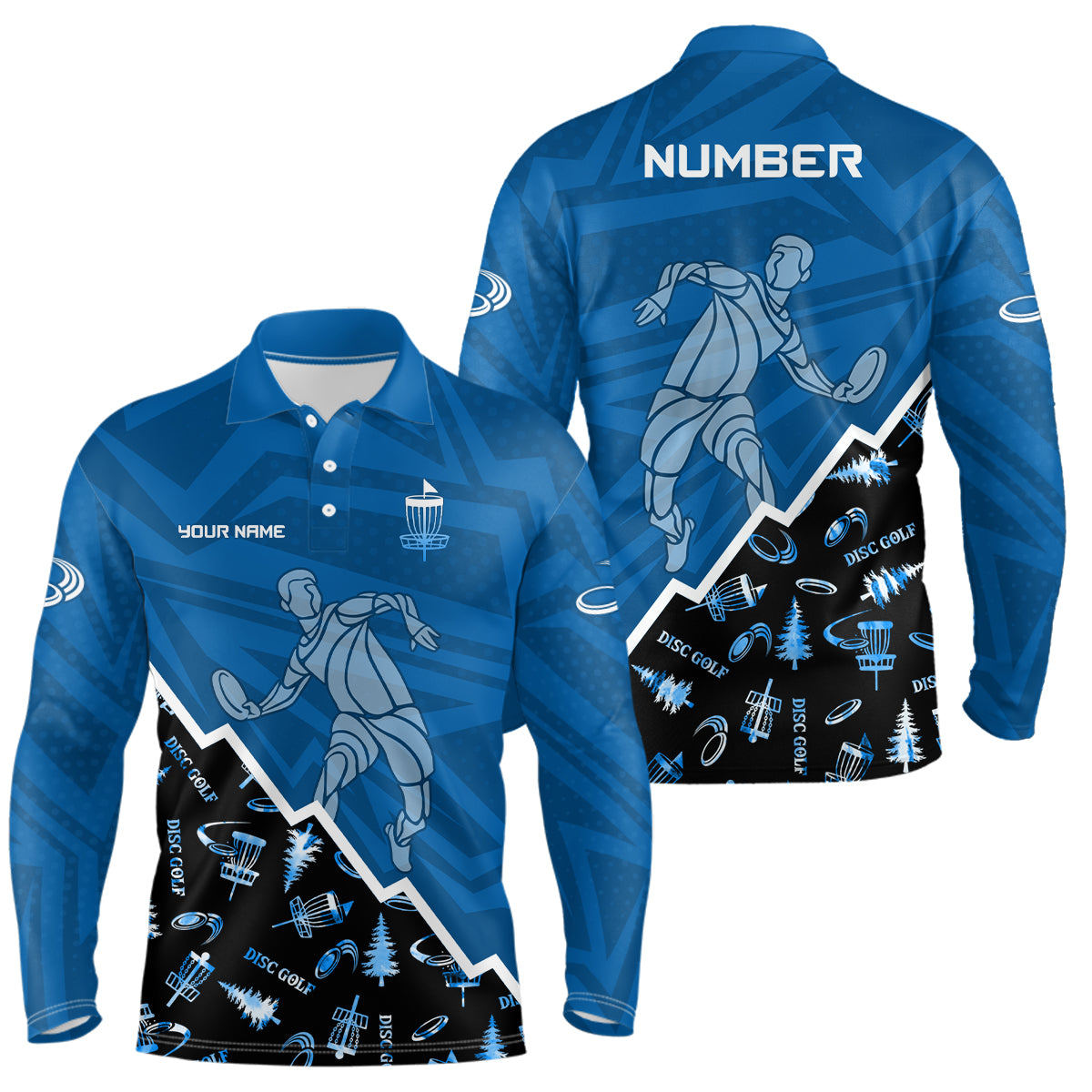 Pattern Color Mens Disc Golf Polo Shirt Custom Name & Number | Blue, Green, Grey YYD0045