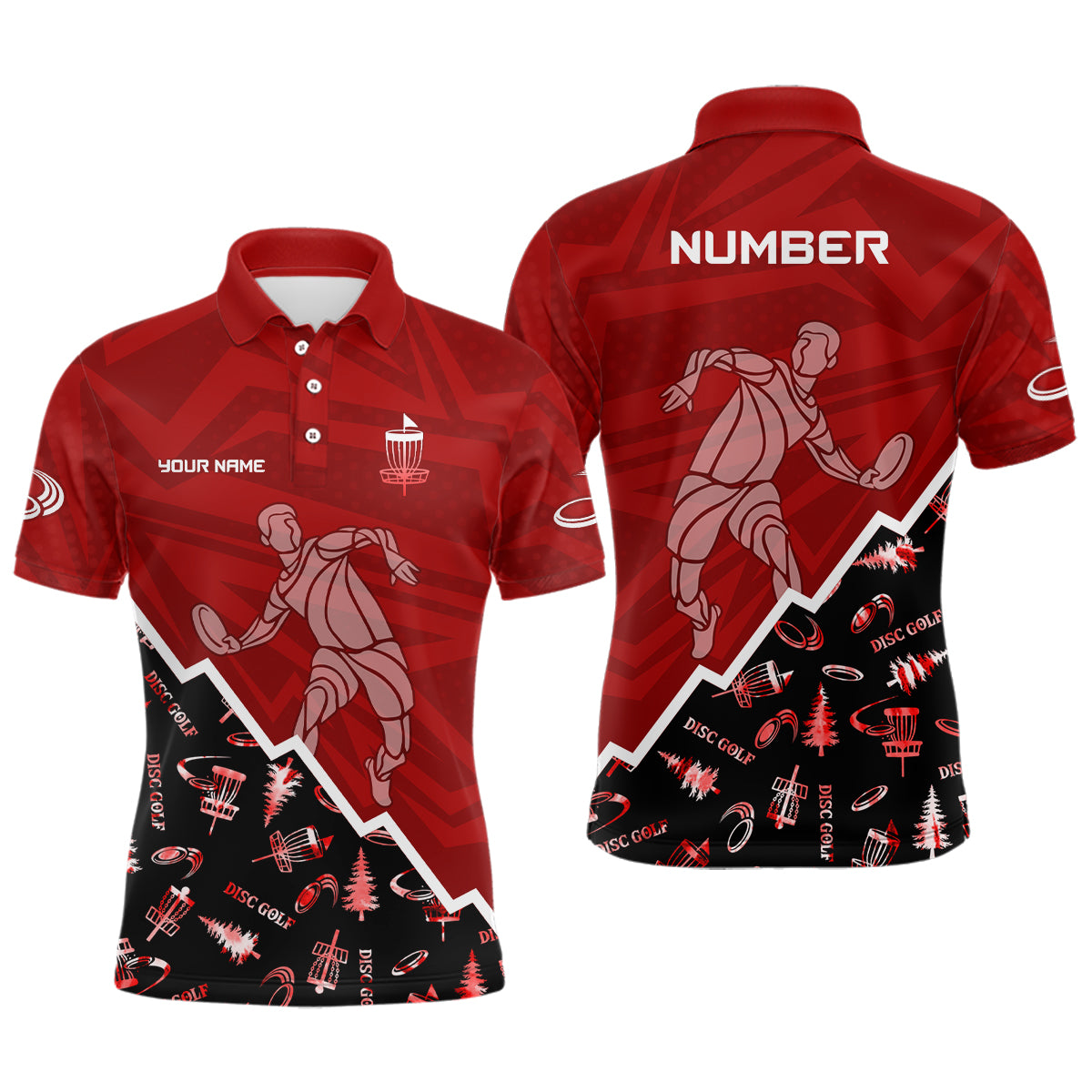 Pattern Color Mens Disc Golf Polo Shirt Custom Name & Number | Pink, Purple, Red YYD0045