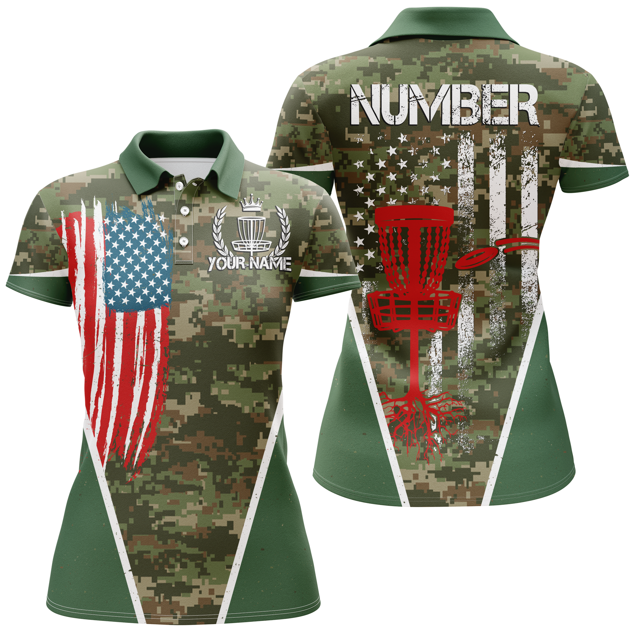Green Camouflage Vintage Usa Flag Disc Golf Polo Shirt Patriotic Disc Golf Shirts For Women LDT0518