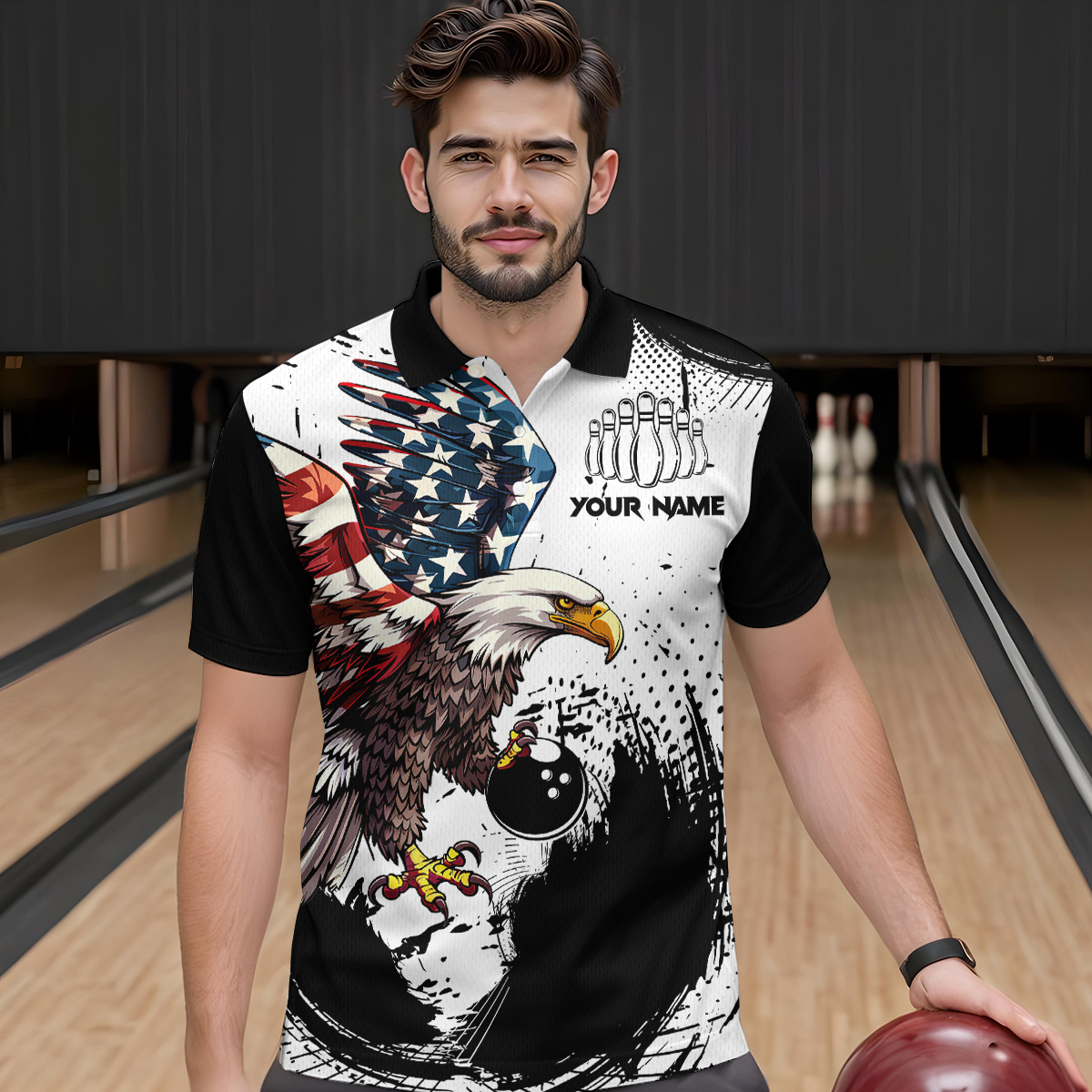 Personalized Eagle Bowling Shirts Patriotic Bowling Jersey for Men Polo Shirt QZT307