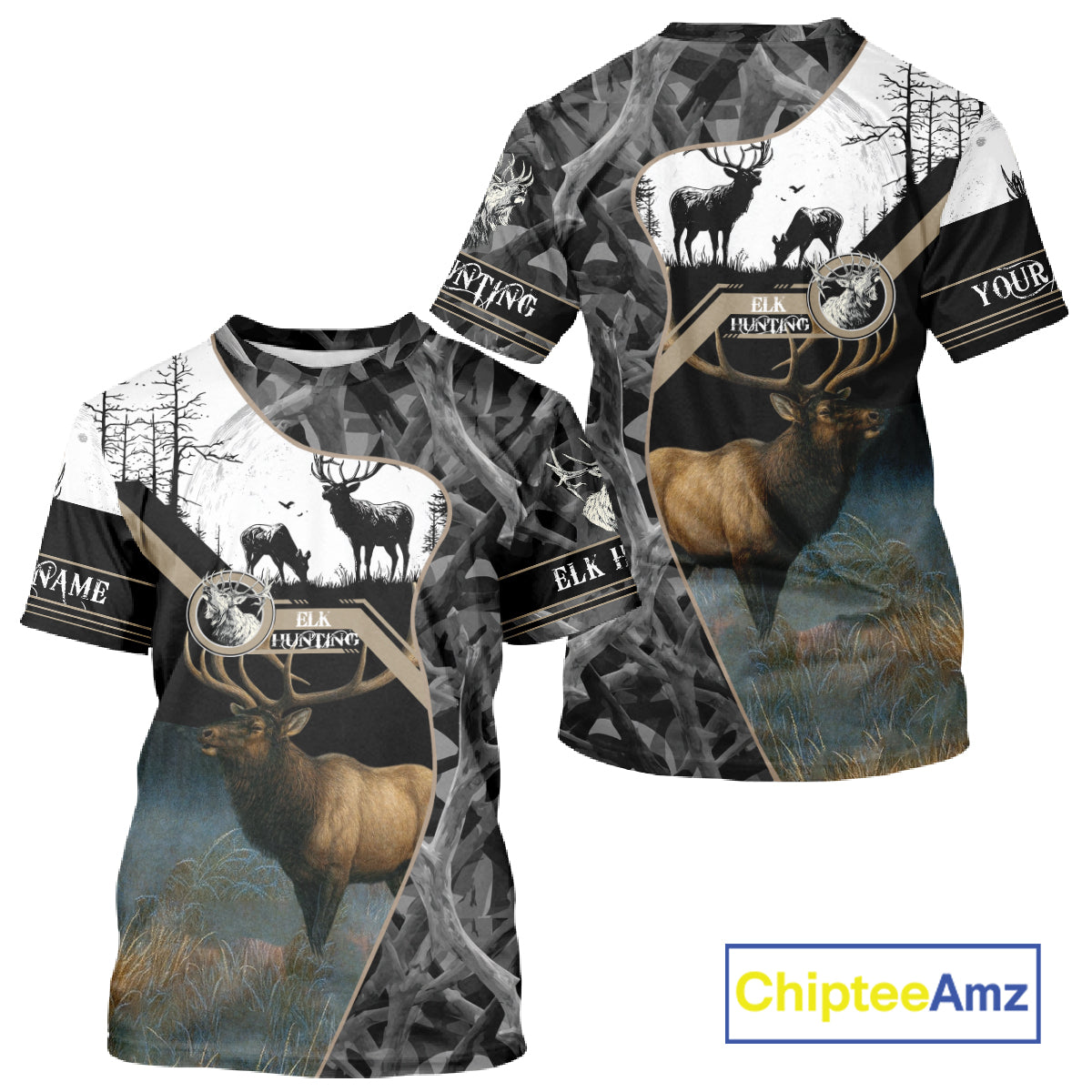 Custom 3D Elk Hunting Shirt With Black Camo Pattern And Full All-Over Elk Print For Hunters NHT78