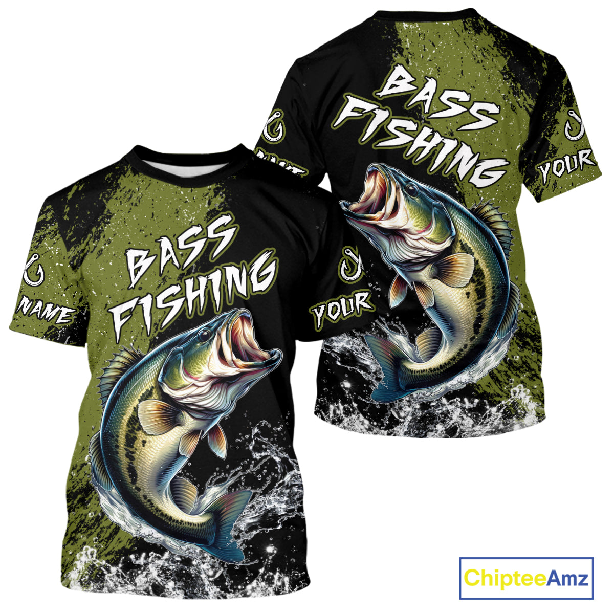 Black and Green Largemouth Bass Fishing Jerseys Custom Bass performance fishing apparel NQS11068