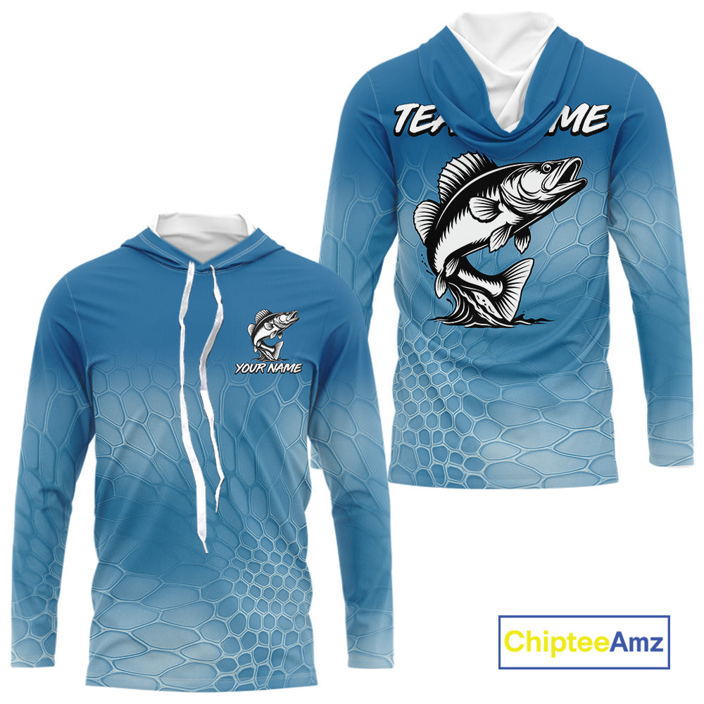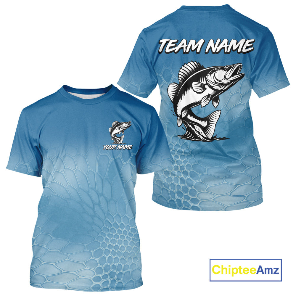 Blue Camo Walleye fishing sun shirts custom name Walleye fishing jerseys for men, women NQS11271
