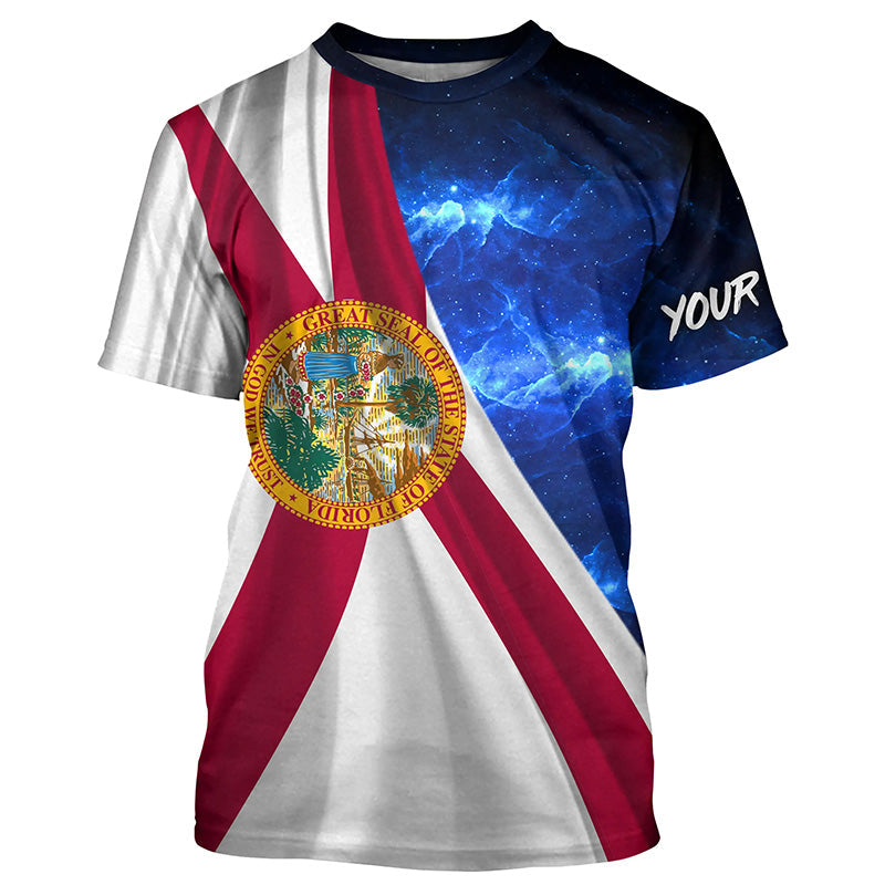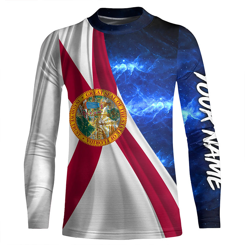 Florida Flag Universe patriotic Custom name blue galaxy UV protection long sleeve Shirts NQS8026